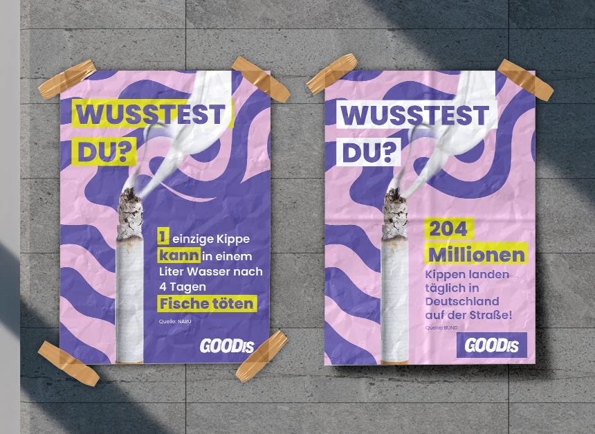GOODis Bremen is a creative environmental project that uses design, campaigns and public interventions to raise awareness about cigarette butt pollution.