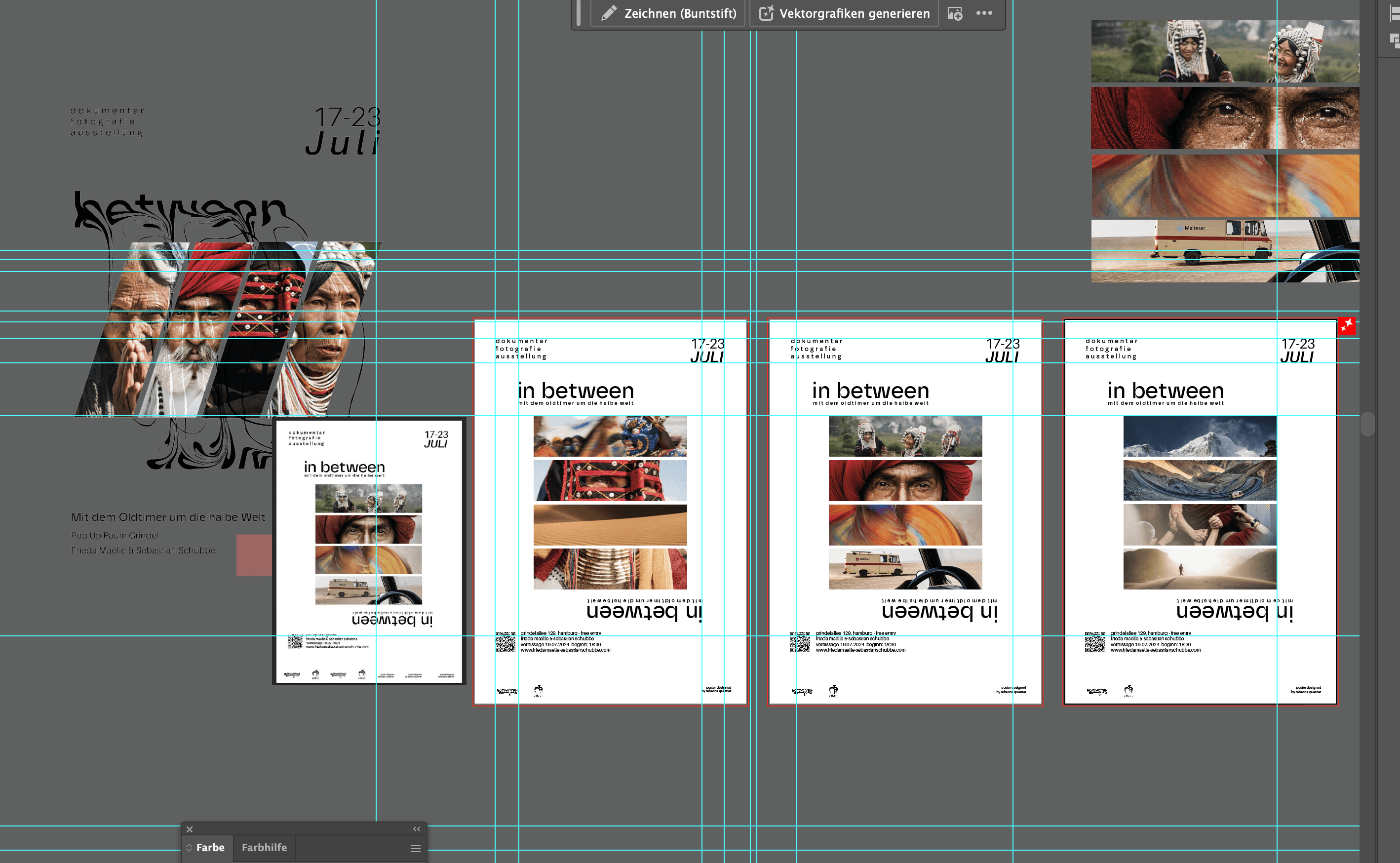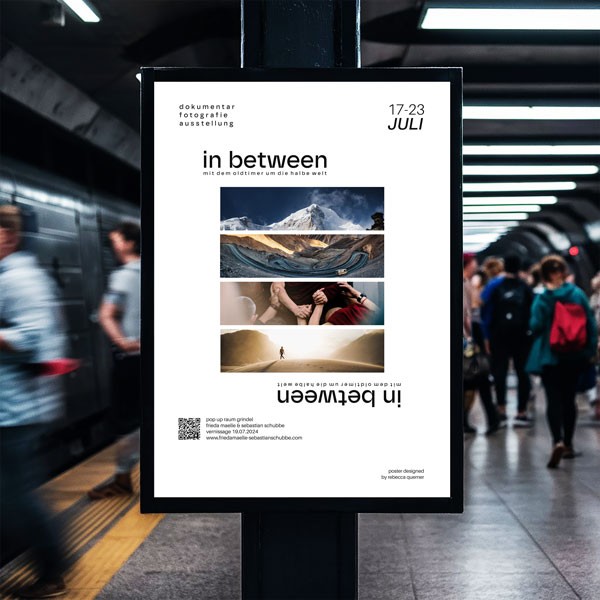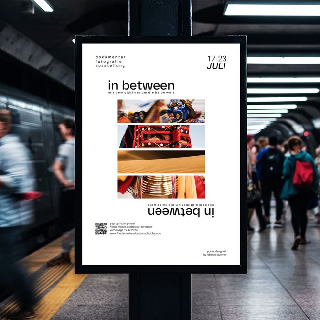 The task: To translate this long-term documentary journey into a poster design that respects the photographed subjects while creating a strong visual presence. The challenge was to balance visual impact with cultural sensitivity — using selection, reduction and composition to reflect movement, fragmentation and the idea of “in between”.